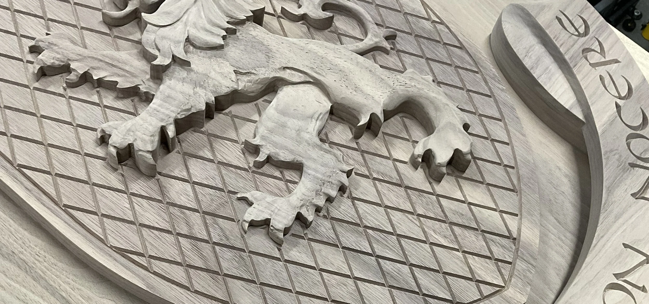 3’ tall, solid walnut. The Farrell family coat of arms. Coats of arms were often granted to individuals rather than entire families, therefore multiple versions often exist featuring the same component parts. Since there is no single "official" coat of arms, unless you have a verified ancestral lineage, artists have the creative freedom to put their own unique spin on the design.